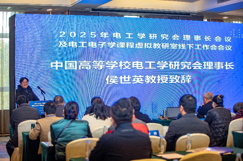 中国高等学校电工学研究会理事长、教育部电工电子学课程虚拟教研室主任侯世英教授作年度工作总结,系统回顾了2025年在课程改革、教材建设、青年教师培养等方面取得的成效。会议期间,各区域负责人汇报片区工作,清华大学段玉生教授主持研讨《虚拟教研室管理办法》,与会代表积极建言,明确了制度建设与年度规划方向。