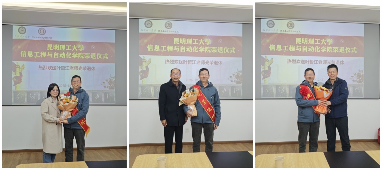 2026年12月31日上午,信息工程与自动化学院在信自楼237会议室隆重举行叶哲江老师荣退仪式。学院领导班子成员、生医系及各系、中心教师代表齐聚一堂,共同致敬这位深耕教育一线的耕耘者。仪式由学院工会主席余鹏程主持。